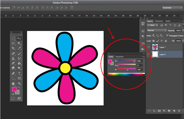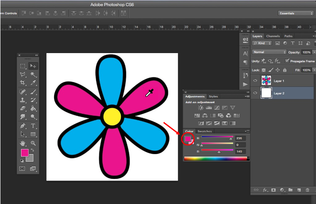2. Select the Eyedropper tool and then click on the color in the image you’d like to convert to Pantone.